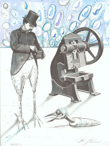 マックス・エルンストやルネ・マグリットに通ずるシュルレアリスト的コラージュ世界。